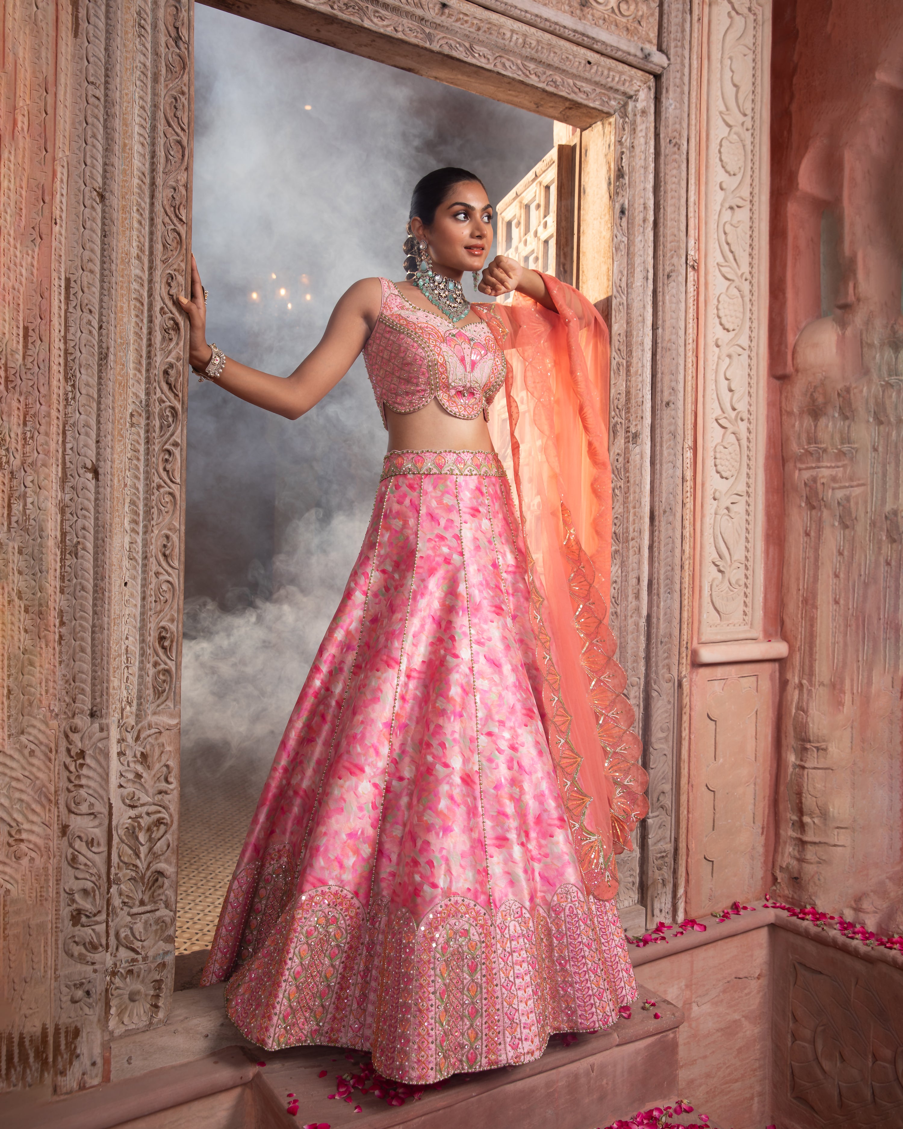 ART-DECO INSPIRED MOTIFS AND HAND-PAINTED PRINTS COLLATED TO CREATE COUTURE PIECES THAT GIVE A NEW PERSPECTIVE ON INDIAN FASHION